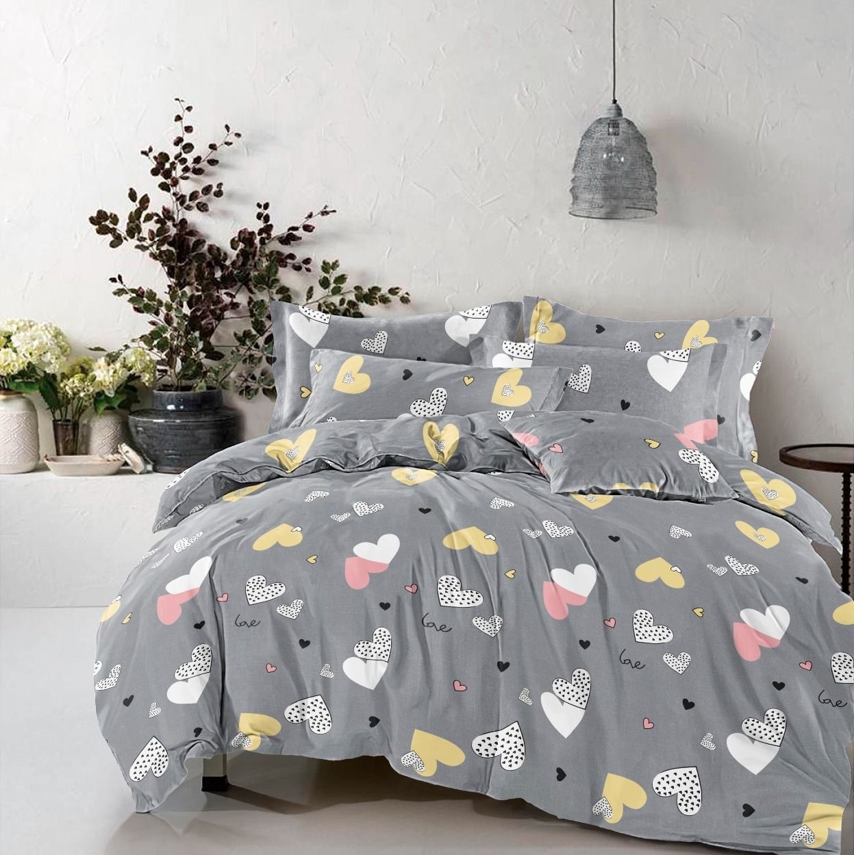 Постільна білизна Королева Ночі (Бязь) | Полуторний комплект | 50х70 | Серця на сірому