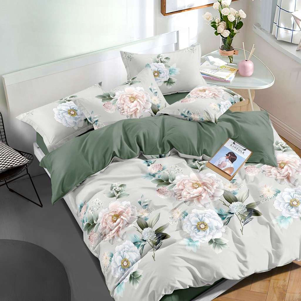 Постільна білизна Королева Ночі (Бязь) | Полуторний комплект | 50х70 | Квіти на сірому та зеленому